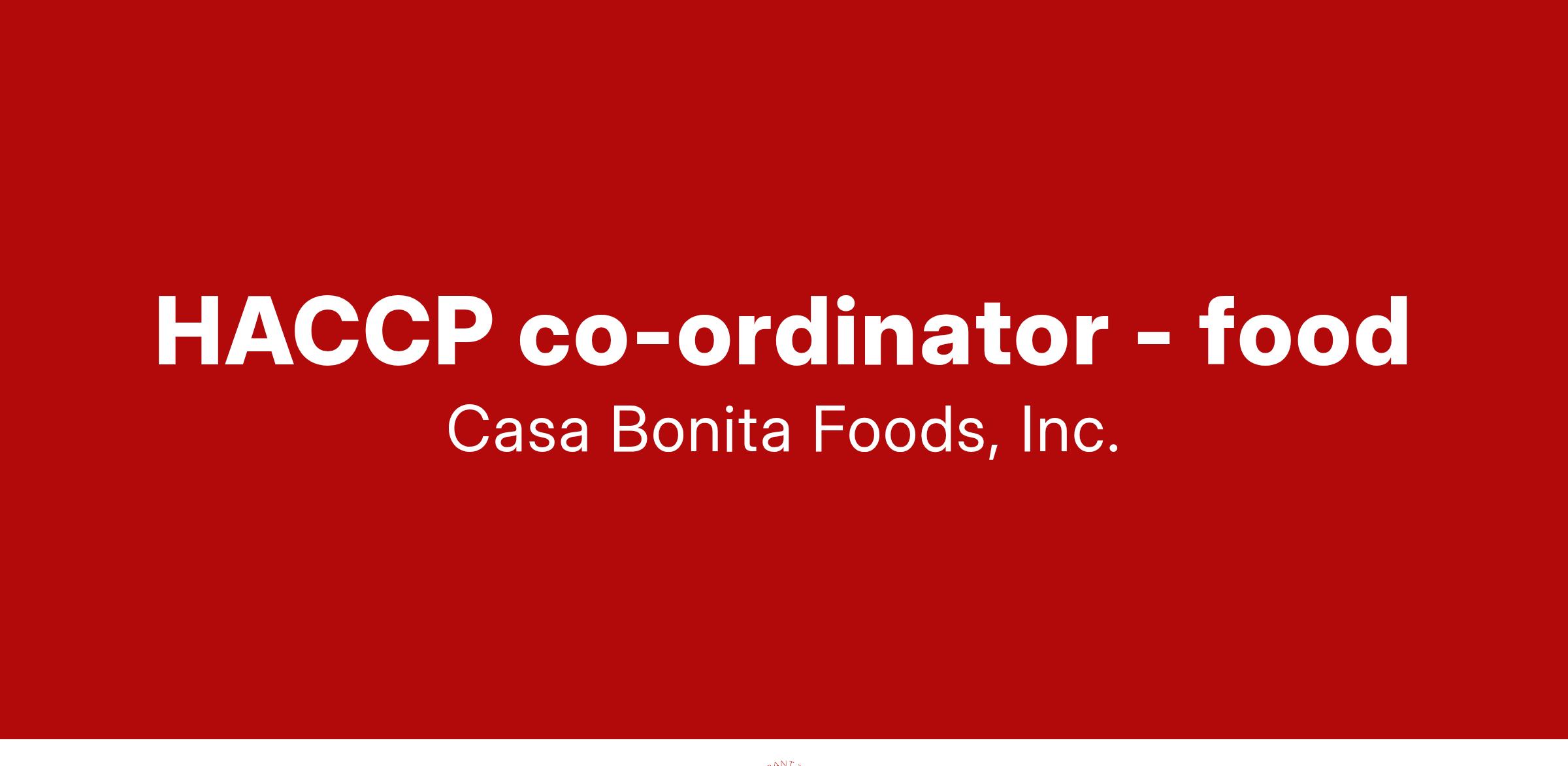 HACCP co-ordinator - food